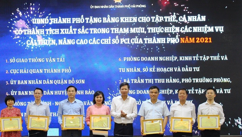 Các tập thể, cá nhân đã có thành tích xuất sắc trong tham mưu, thực hiện nhiệm vụ cải thiện, nâng cao các chỉ số PCI của TP Hải Phòng năm 2021
