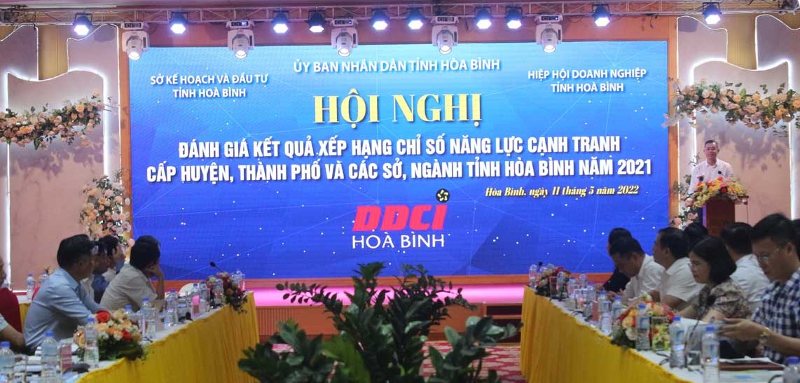 UBND tỉnh Hòa Bình tổ chức hội nghị đánh giá kết quả xếp hạng Chỉ số năng lực cạnh tranh cấp huyện và các sở, ngành (DDCI) áp dụng thử nghiệm năm 2021. Dự, chỉ đạo hội nghị có các đồng chí: Ngô Văn Tuấn, Ủy viên BCH T.Ư Đảng, Bí thư Tỉnh ủy, Trưởng Đoàn ĐBQH tỉnh; Bùi Văn Khánh, Phó Bí thư Tỉnh ủy, Chủ tịch UBND tỉnh; các đồng chí lãnh đạo HĐND, UBND tỉnh; các sở, ban, ngành, huyện, thành phố; lãnh đạo Hiệp hội doanh nghiệp (DN) tỉnh và đại diện một số DN, nhà đầu tư (NĐT).